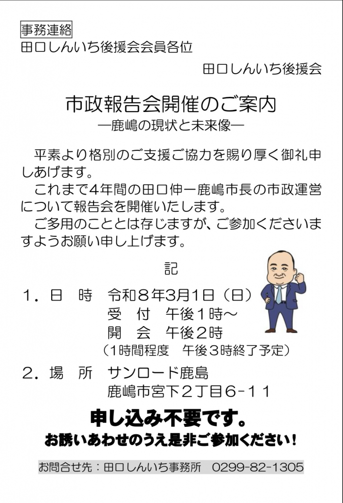 お問合せ先:田口しんいち事務所 0299-82-1305