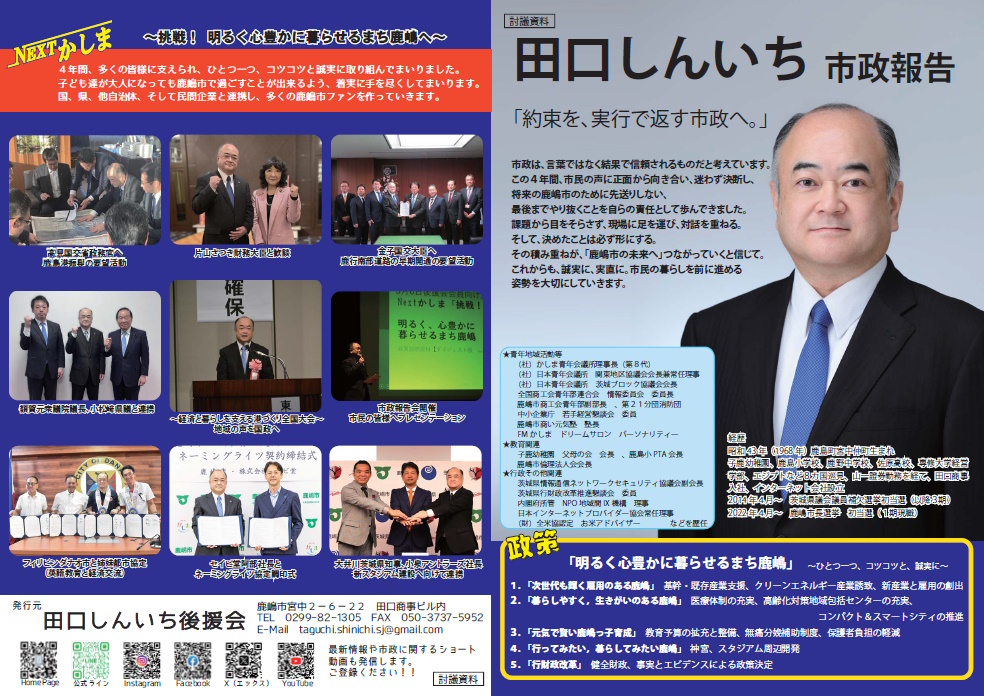 田口 しんいち 政策2022 『 Nextかしま 挑戦 明るく、心豊かに暮らせる鹿嶋』